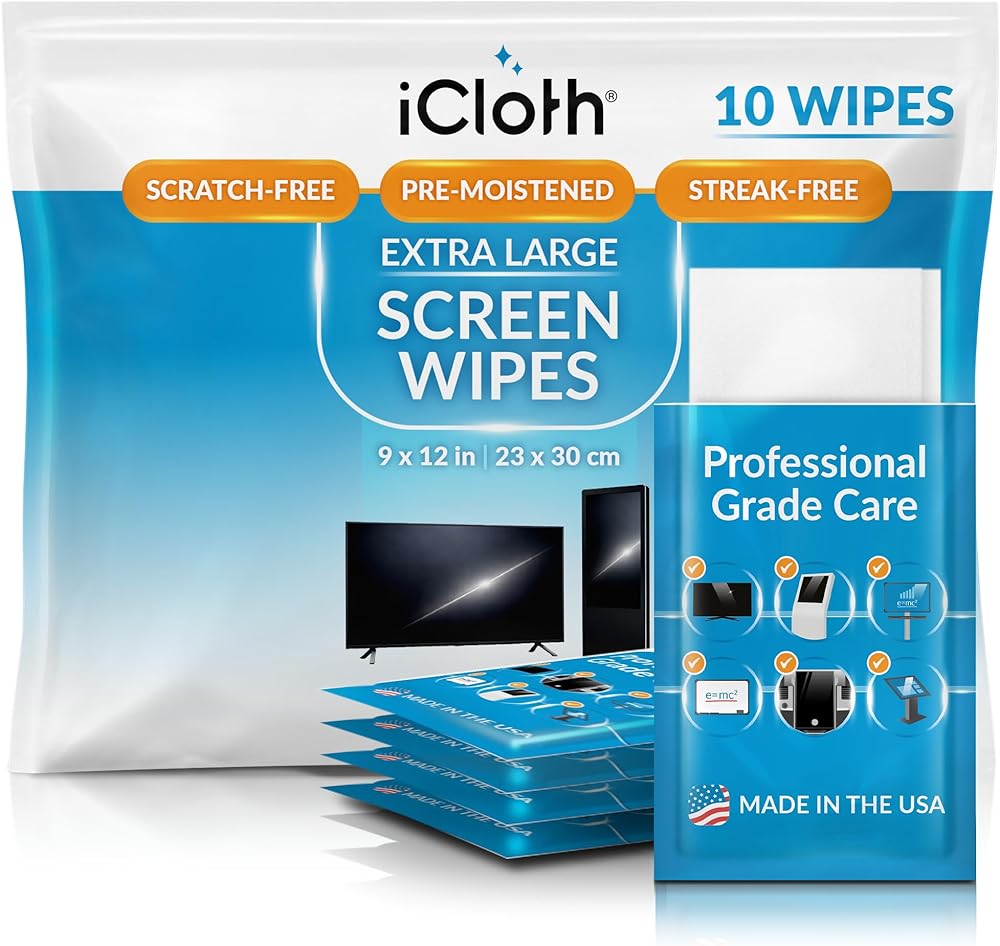 Tailored Formula for Delicate Screens: Our iCloth wipes feature a special blend of purified deionized water and isopropyl alcohol, ideal for safely cleaning computer monitors, displays, and television screens.