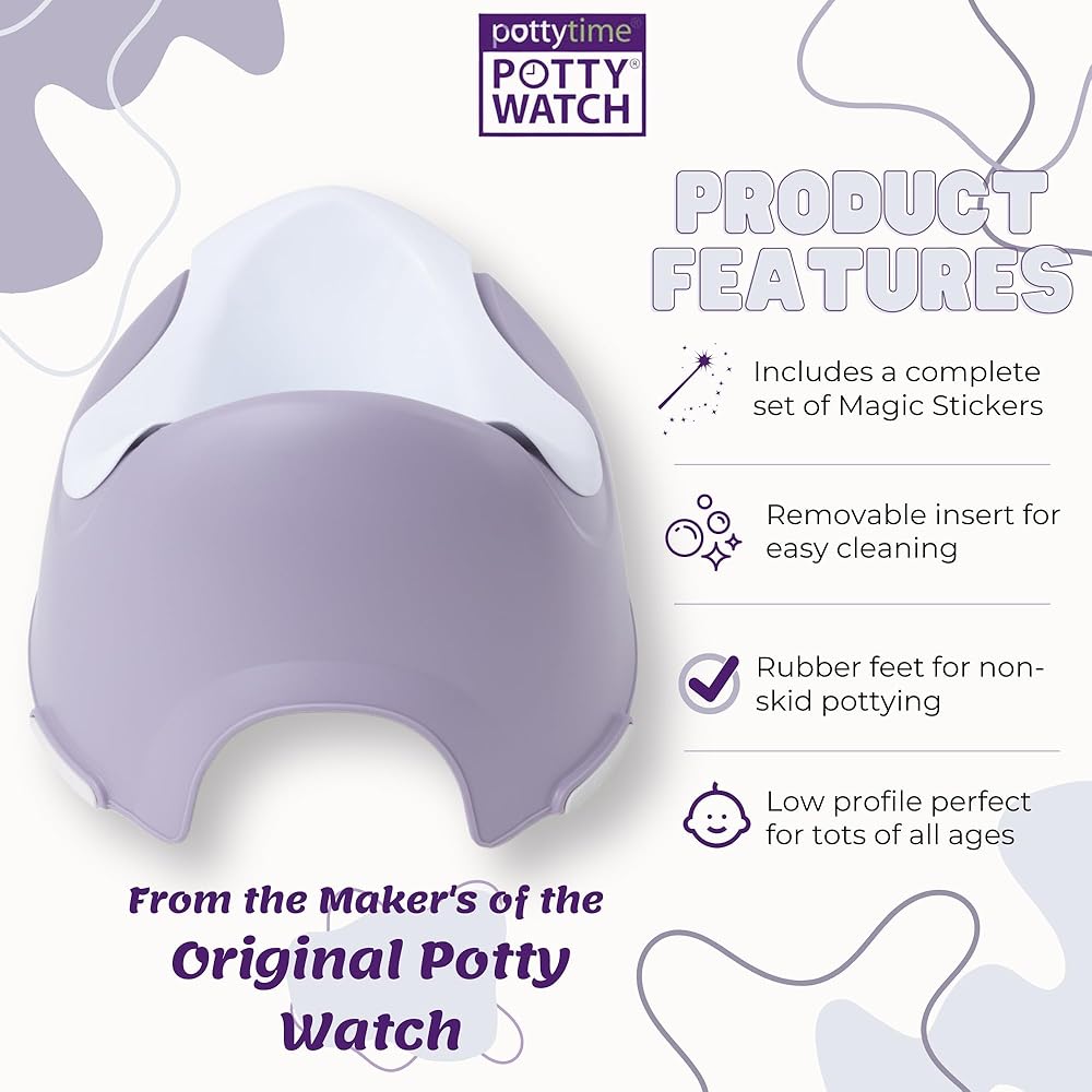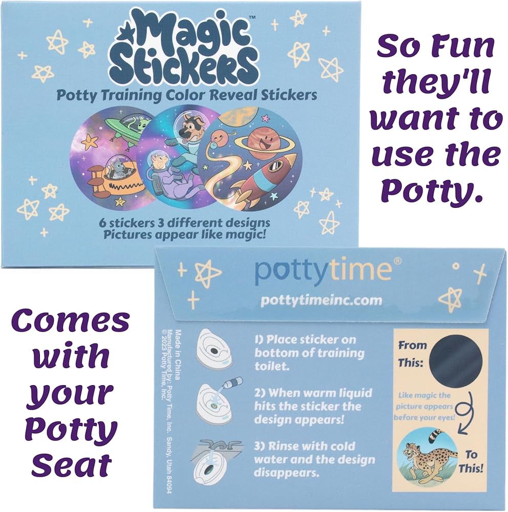 Introducing the revolutionary Color-Changing Magic Stickers & Potty Training Seat bundle brought to you by the brilliant minds behind the renowned Potty Watch! Make potty training a breeze and an absolute delight for both parents and toddlers alike with this innovative and interactive potty training seat. Designed to take the stress out of toilet training, our Color-Changing Magic Stickers Potty Training Seat brings a touch of enchantment and excitement to this important milestone. Thanks to the magic of our removable and reusable color-changing stickers, your little one will be motivated and engaged throughout their potty training journey. 🎶 Your child will love ♥️ the independence of knowing it's time to run 🏃♀️ to the potty and you'll love not having to keep track of when it's time to go! 🙌 Don't be fooled by imitations, Potty Watch is a family-owned U.S. small-business. We are the original inventors of The Potty Watch and have helped over Millions of Families in their potty training journey 🎉 by solving one of the biggest problems of toilet training - reminding your toddler to try to go to the bathroom. 🚽 With the Potty Watch strapped to their wrist, toddlers will be reminded by music 🎶 and blinking lights ✨✨ to head to the bathroom. Parents choose the time between bathroom visits, extending it as children get better at figuring out when to go potty. Just set the Potty Watch timer ⏲️ for 30, 60, or 90 minutes. It will count down to 00:00, then a song and flashing lights 🚥will play, letting the child know it's time to try going potty. After the song and lights finish playing, the timer automatically resets and begins counting down again. Kids can also sing along with the well-known tunes. Potty time lyrics are included with the potty watch instructions.