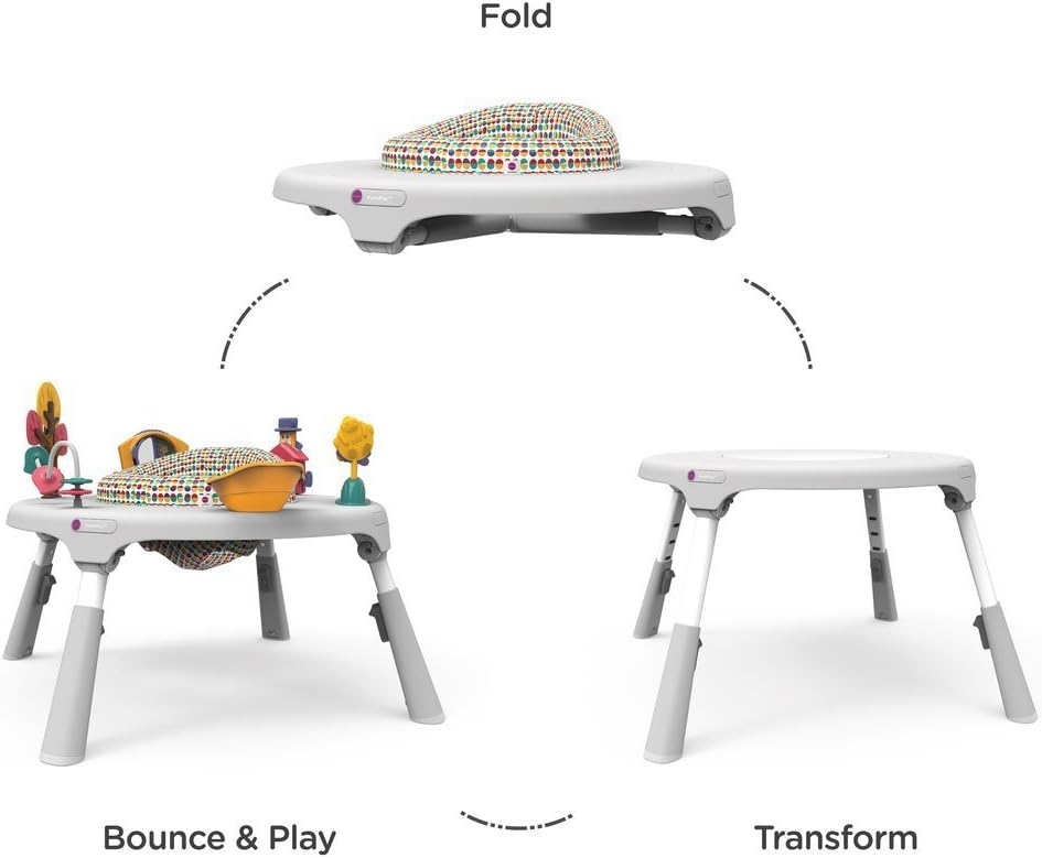 MULTI STAGE! The PortaPlay Activity Center Wonderland can be used to Turn, Bounce, Play, Transform, and Fold. All in one product! A product that truly allows your child to explore down the rabbit hole.