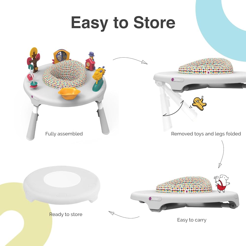 GROW WITH ME! Swap the seat with the Table top provided to convert into a Play Table for toddlers up to 5 years old. Use with the PortaPlay Stools (sold separately) and art paper roll dispenser (sold separately) for drawing, sketching, projects, and any imaginative activities your little one can dream up!