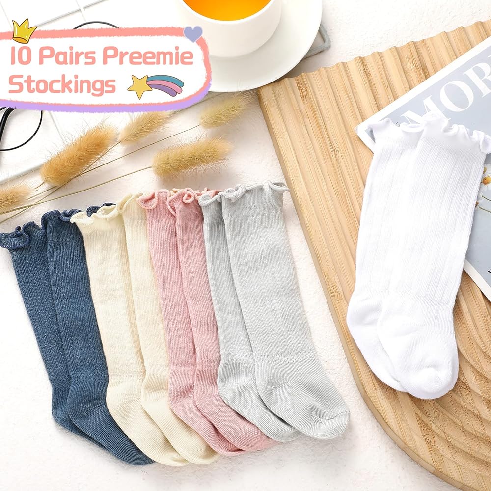 Ruffled Design: premature baby socks are colorful and attractive, and with a ruffle trim top design, stylish and elegant; Solid color, suitable for preemie babies of unknown gender, baby boys and baby girls, elegant and classic