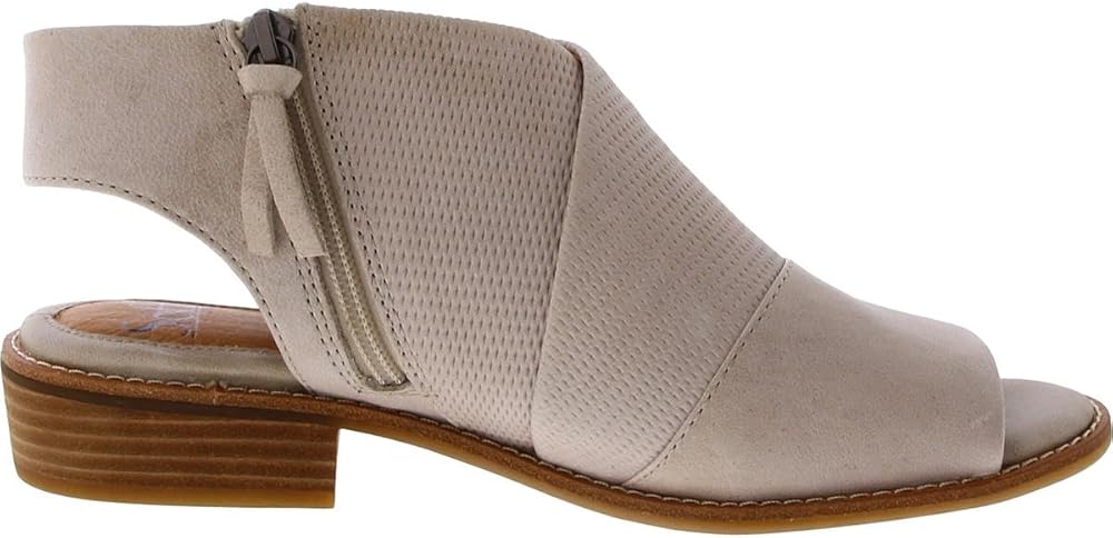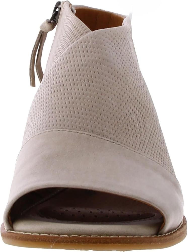 Hooded sandal with perforated leather, slingback, inside zip, flexible outsole.
