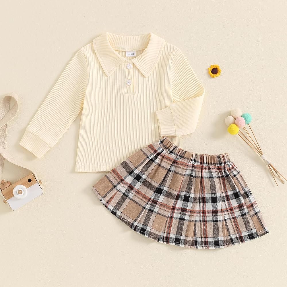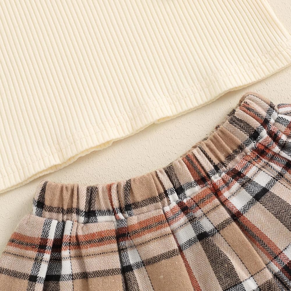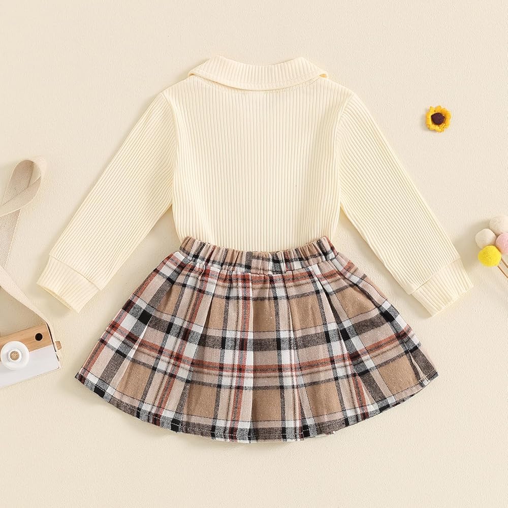 Material: Toddler baby girl skirt set made of cotton,ribbed knit shirt stretchy well,mini skirts set for toddler girl fall outfit,comfy for girl to dress in fall/winter