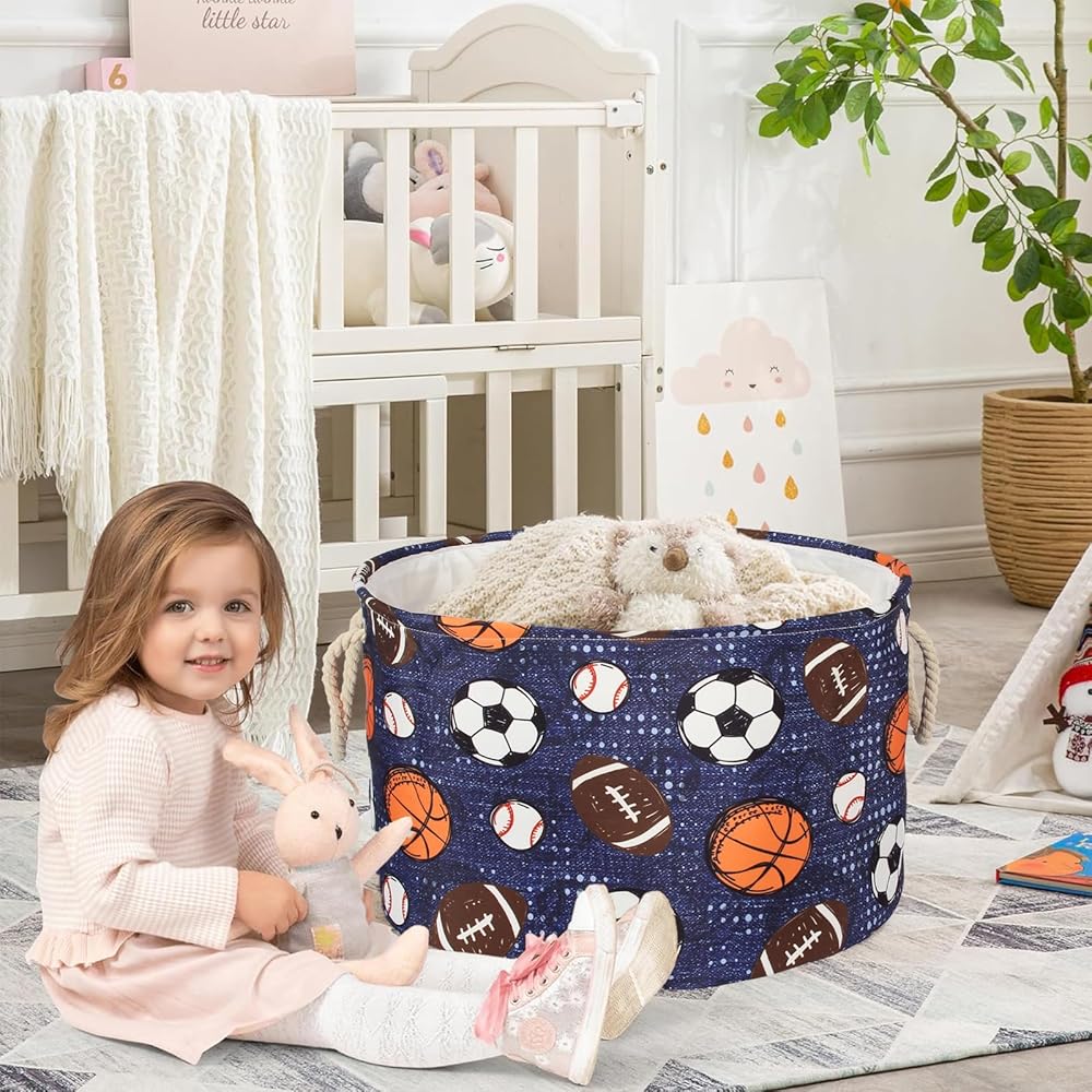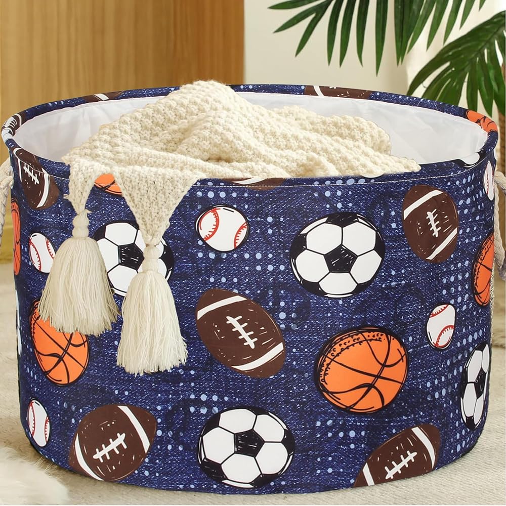 Large 20" x 14" Nursery Storage Basket - Large enough to store bulky items such as extra blankets, comforters, duvets, throw pillows, cushions and stuffed animals, winter clothes, laundry and more. There is also plenty of room for smaller miscellaneous items such as books, magazines and toys to help keep your living space tidy!
