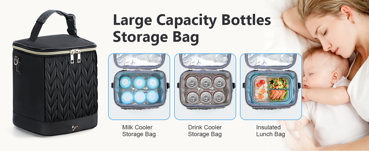 Convenient to Carry: With a detachable buckle top handle, this cooler bag easily attaches to a stroller, while the adjustable shoulder strap (28-57 inches) ensures maximum comfort. Its portable design makes it easy to take along wherever you go, and aside from breastmilk, it doubles as a lunch bag, perfect for carrying snacks, fruits, or other foods.