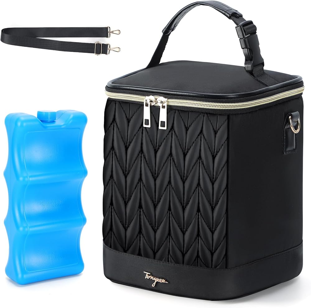 Breastmilk Cooler Bag with Ice Pack, Fits 6 Baby Bottles up to 9 Ounces, Tear-Resistant Insulated Baby Bottle Bag with Shoulder Strap, Portable and Stylish for Nursing Moms