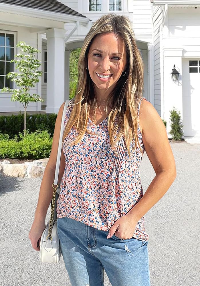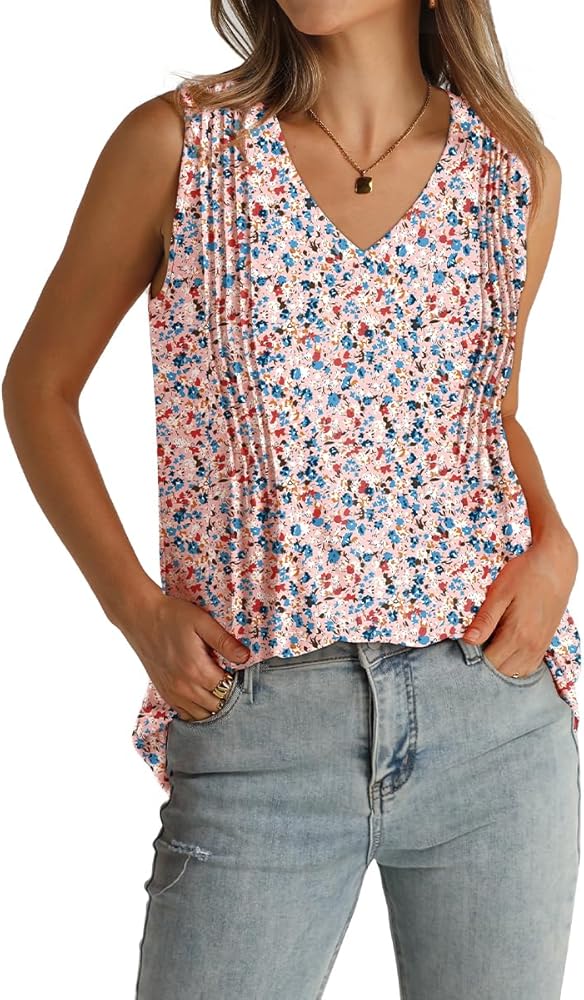 Design:V neck tank tops with pleat in front,loose without being baggy, The cut of this tanks is suitable for girls of all body types.It‘s stretchy enough to hide your belly well.