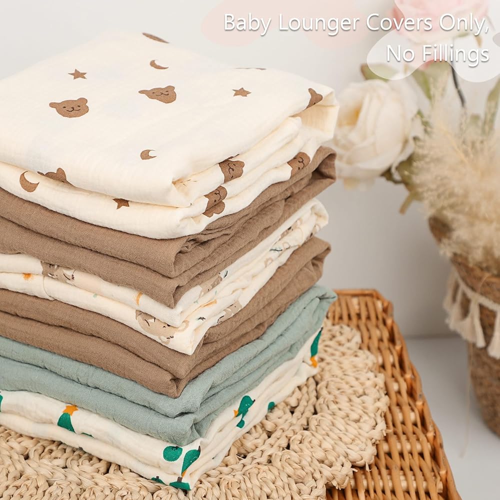 Pea Pod presents the ultimate Baby Lounger Cover made from 100% muslin cotton. Experience unparalleled softness, breathability, and durability for your baby's comfort and protection