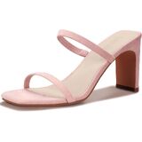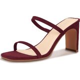 Carcuume Women's Square Toe Two Strap Open Toe Block Heels Sandals Slip On Shoes