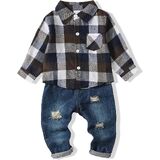 Material: Baby boy clothes denim winter outfits, by using quality cozy fabric, both the button plaid top and the denim ripped pants are soft, breathable, stretchable and comfortable.