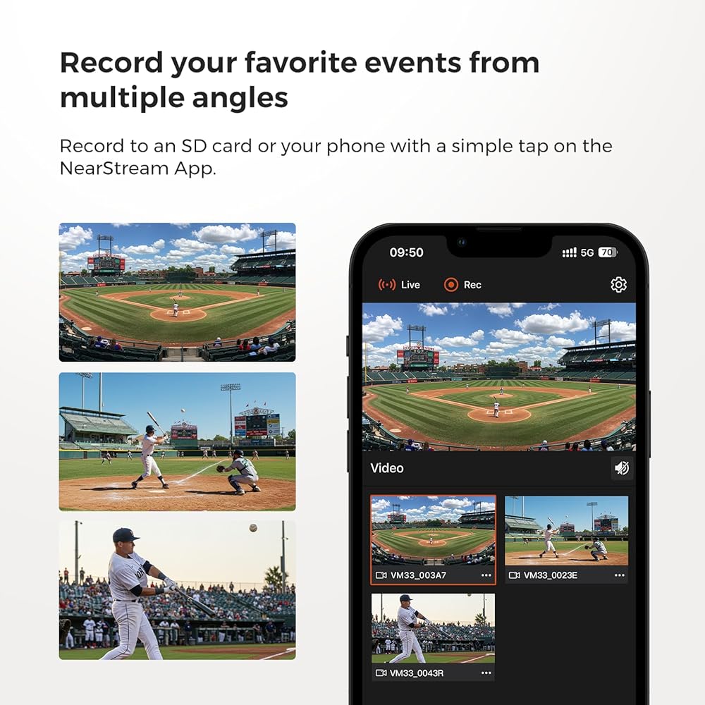 【Multi-cam Ready】: The 3 pack VM33 wireless streaming cameras can help you to create efficient and high-quality streams or recording from multiple angles, especially suitable for sports events. (NOTE: For multiple recording needs, you can insert a microSD card with storage capacity ranging from 32GB to 128GB (write speed 10MB/s, class: V10 or higher), formatted in FAT32.)