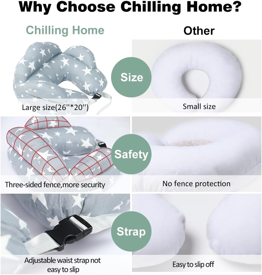 Adjustable Waist Strap -- Our nursing pillows for breastfeeding can be adjusted and fit most waists of moms, eliminating the gap between you and baby, no-slip off, maintaining the ideal position of safety. Kindly note, This nursing pillow for breastfeeding is for baby awake-time for feeding, not for sleep.