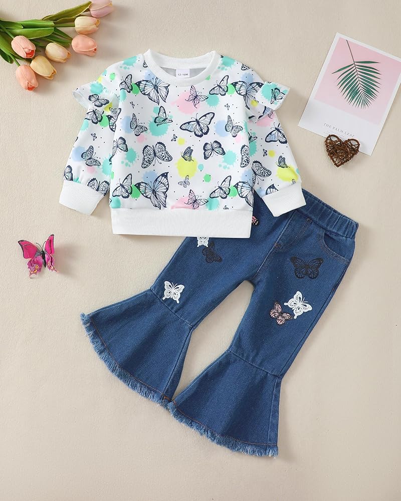 Package: 1 x Tops + 1 x jeans pants +1 x headband. These little girl pants sets are easy to clean, both hand wash and machine are OK.