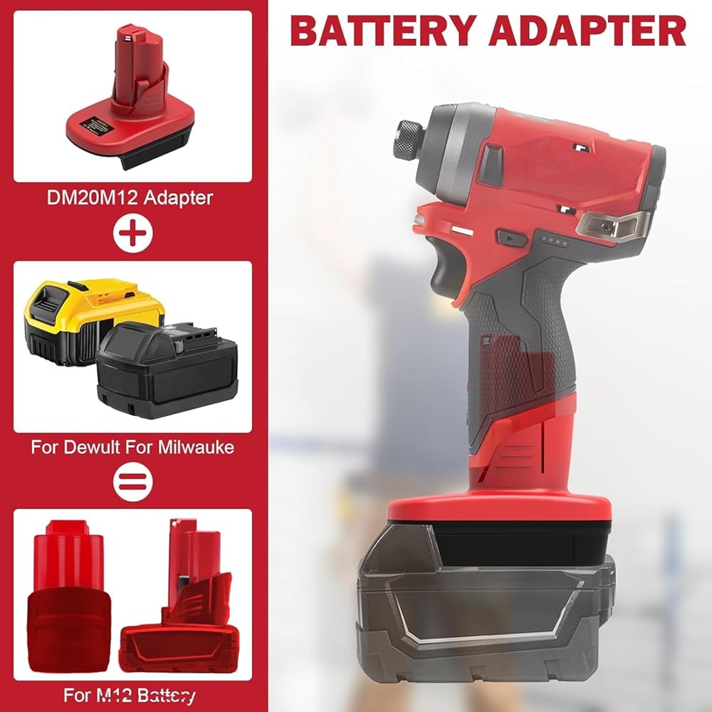 【A New Innovation for Milwaukee M12 Tools】The DM20M12 adapter for Dewalt 20V Li-ion & Milwaukee 18V lithium battery to convert to/for Milwaukee M12 12V power tools, which means you can use the dewallt 20v battery & for milwaukee m18 18V battery with our DM20M12 adapter to use the m12 tools as normal; To replace the original M12 li-ion battery.