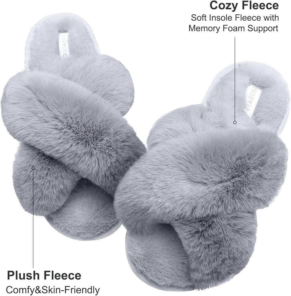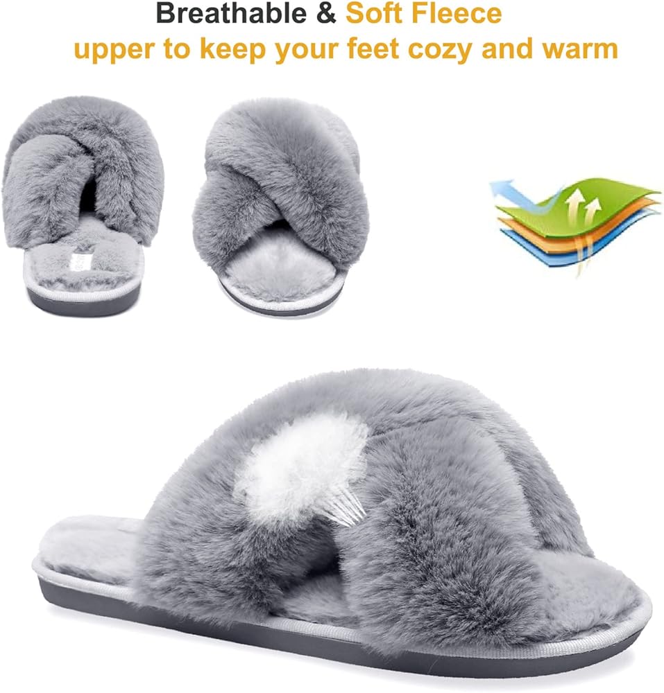 مصنوع من فرو صناعي ناعم من القطيفة، شريط متقاطع مع تصميم مفتوح عند الأصابع لجعل هذا الحذاء أكثر أناقة وراحة وفخامة وراحة. تصميم مفتوح عند أصابع القدم مسامي يحافظ على قدميك منتعشة ومنتعشة في الربيع والصيف والشتاء