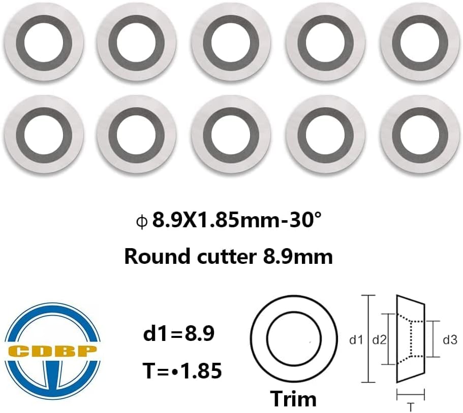 Size:0.35"(8.9mm) Diameter, 1.85mm Thickness, 30° Cutting Angle, one countersink hole, Ci5 Finisher Hollower Lathe Woodturning Tool or Woodworking Planer etc.