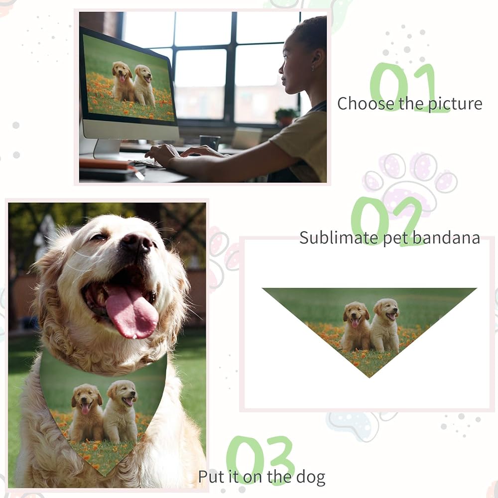It is a good choice to give these heat transfer DIY dog bandanas to your lovely pets, making them eye-catching and stylish in many occasions, and you can share with friends who have pets.