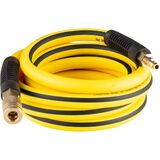 Both ends has installed with 1/4” industrial NPT fittings and quick brass coupler&plug for directly connect to air compressor and other air pneumatic tools. Bend restrictor reduce kinking and prolong the lifetime of hose. The ending brass coupler and plug can be repaired by wrench.