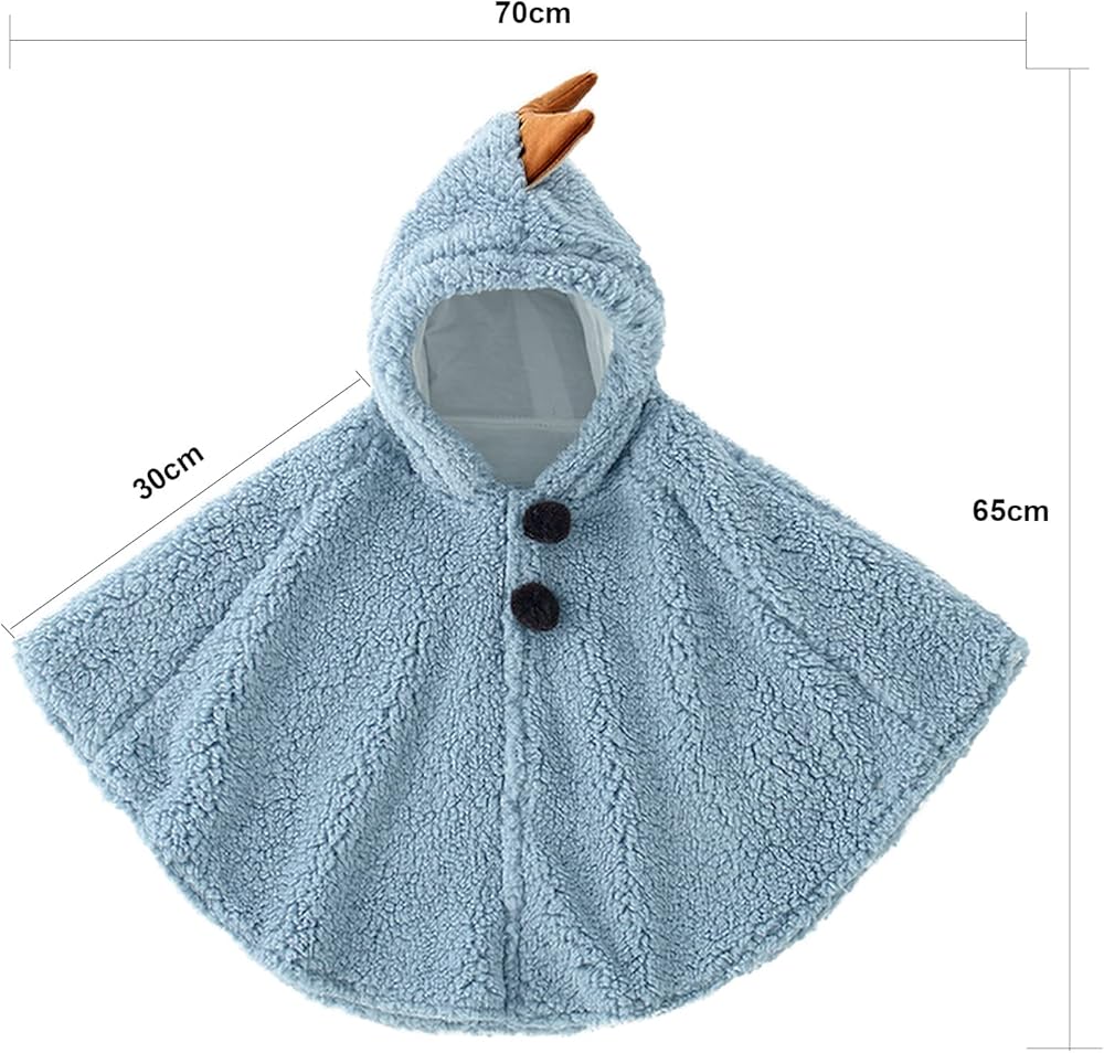 Size: The cute winter cloak measures 45cm/17.72in in length and 70cm/27.56in width, making it suitable for most boys and girls aged 1-3.