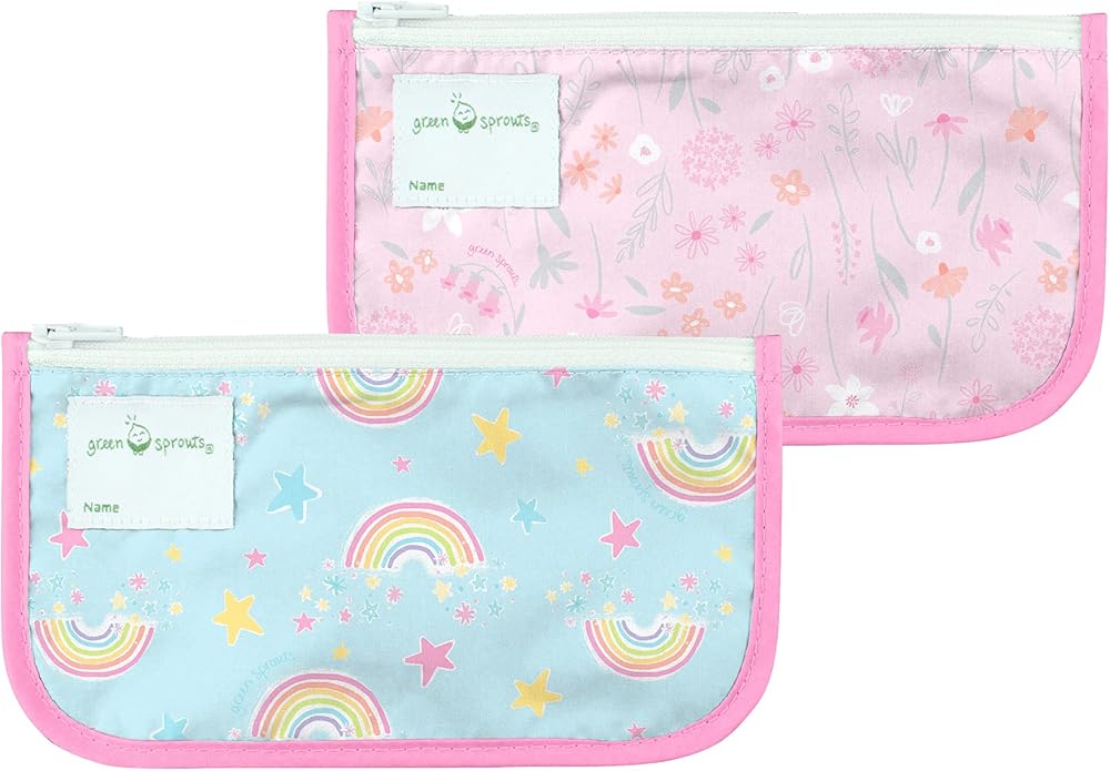 Green Sprouts Reusable Snack Bags (2 Pack) Holds Food, Utensils, Wipes, & More Food-Safe, Waterproof, Easy-Clean Material