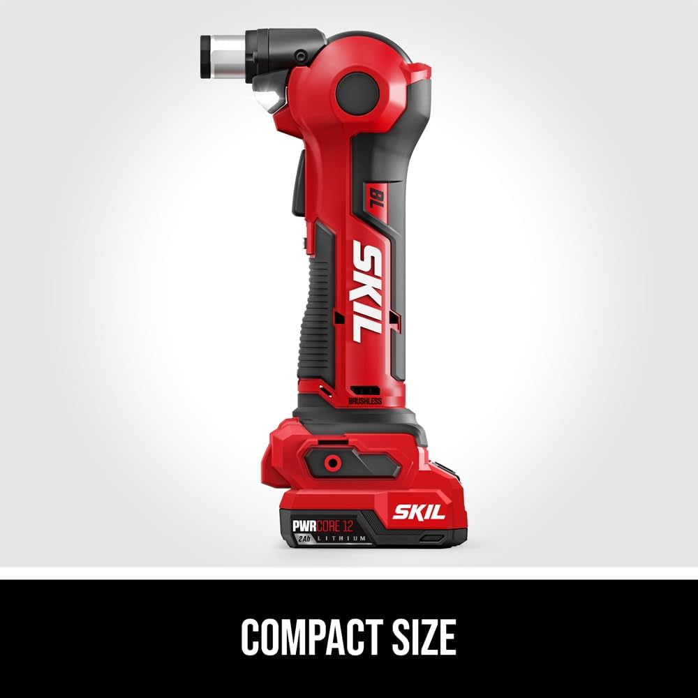 The SKIL PWR CORE 12™ Brushless 12V Auto Hammer is a compact and cordless auto hammer for hard-to-reach areas. Whether the job is in a confined, overhead, or dimly lit space, this auto nailer brings power and convenience to the job—hammering nails up to 3.5 inches long. This cordless auto nailer also has a digital brushless motor that delivers a powerful 4,200 IPM for maximum efficiency in a lightweight design. The magnetic collet securely holds nails for convenient one-handed use and proper positioning. And its 3-position adjustable head (0°, 45°, and 90°) hammers at a variety of angles for greater versatility in tight areas. Its compact design includes a lock-off switch to prevent accidental startups and a built-in LED light with after-glow illuminates dimly lit spaces. The included 12V 2.0Ah USB-C battery features two-way rapid charging that allows you to charge the battery or portable devices with its 60W USB-C port. When it's time to recharge the battery, the multifunctional charger ditches the traditional power tool charging dock for a compact, convenient format that can plug in anywhere. The kit includes the cordless auto hammer, 12V 2.0Ah USB-C battery, 20W USB-C charger, charging cable, and belt clip.