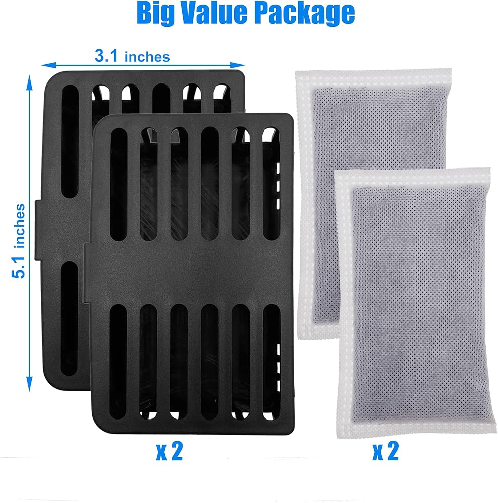 Trash Can Deodorizer Kit Stick-On Activated Carbon Odor Eliminator for Large Trash Cans, Indoor Kitchen Compost bins, Big Step or Touchless Sensor Garbage Cans (2 Black Kits)
