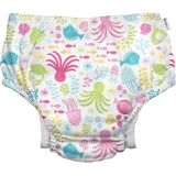Swim and splash with confidence knowing your little one is protected from accidents with our i play® by green sprouts® Eco Snap Swim Diaper. Made from recycled polyester and safe for the washing machine, the Eco Snap Swim Diaper reduces waste and expense compared to disposable diapers, while helping to protect the natural world. This secure, lightweight, & comfortable swim diaper features patented triple-layer protection: a wicking liner to prevent diaper rash, an absorbent inner layer that doesn't puff up or weigh swimmers down, and a waterproof outer layer to prevent leaks. This slim, snug design is available in adorable prints to wear alone or under a standard swimsuit. Added gussets for extra protection, easy-lock side snaps, and machine-washable material for convenient on-and-off and cleaning. Trusted by parents and swim schools for over 30 years, these premium-quality swim diapers have been tested against over 350 harmful substances to meet STANDARD 100 by OEKO-TEX® certification and offer UPF 50+ sun protection for your baby's health and safety.