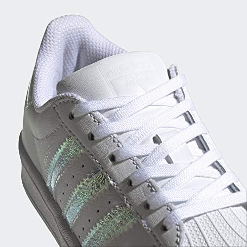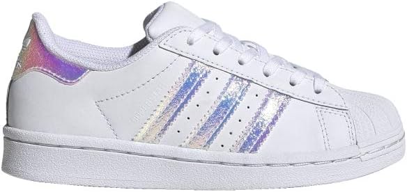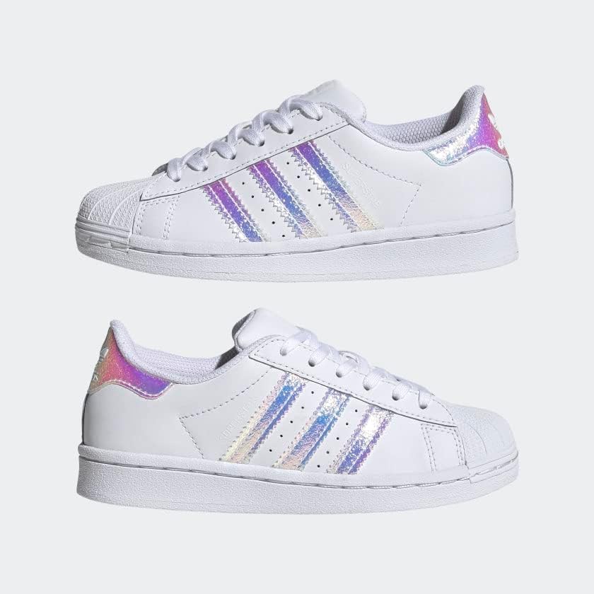 Ready to shine. Whether they're watching a game from the sidelines or taking their first steps towards shooting hoops themselves, these shoes will set your infant up for success. Ever since 1970, when the adidas Superstar shoe first appeared on the basketball court, they've held their place as an icon. These version boldly shines with iridescent 3-Stripes. Each pair comes with two sets of laces, one standard and one elastic for easy on and off.