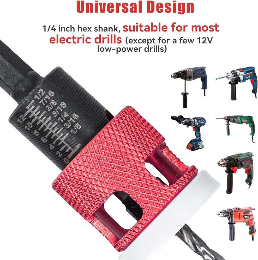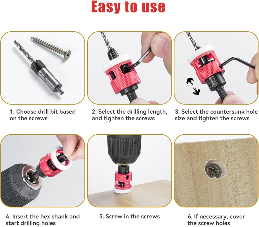 Depth Adjustable : Both pilot drill and counterbore depth are adjustable by adjusting the depth stop and drill bit with the wrench included, to achieve accurate drilling. The added plastics collar can reduce surface marring effectively.