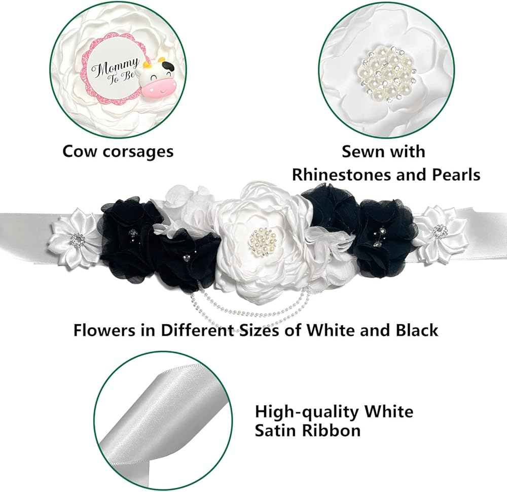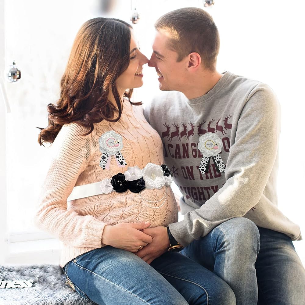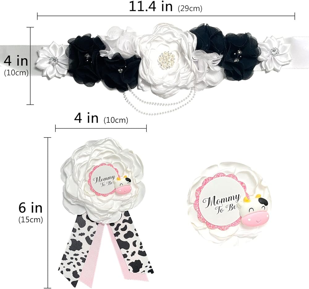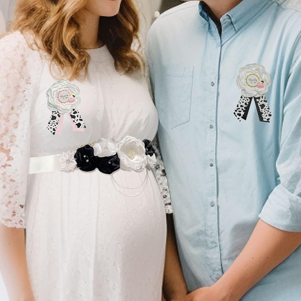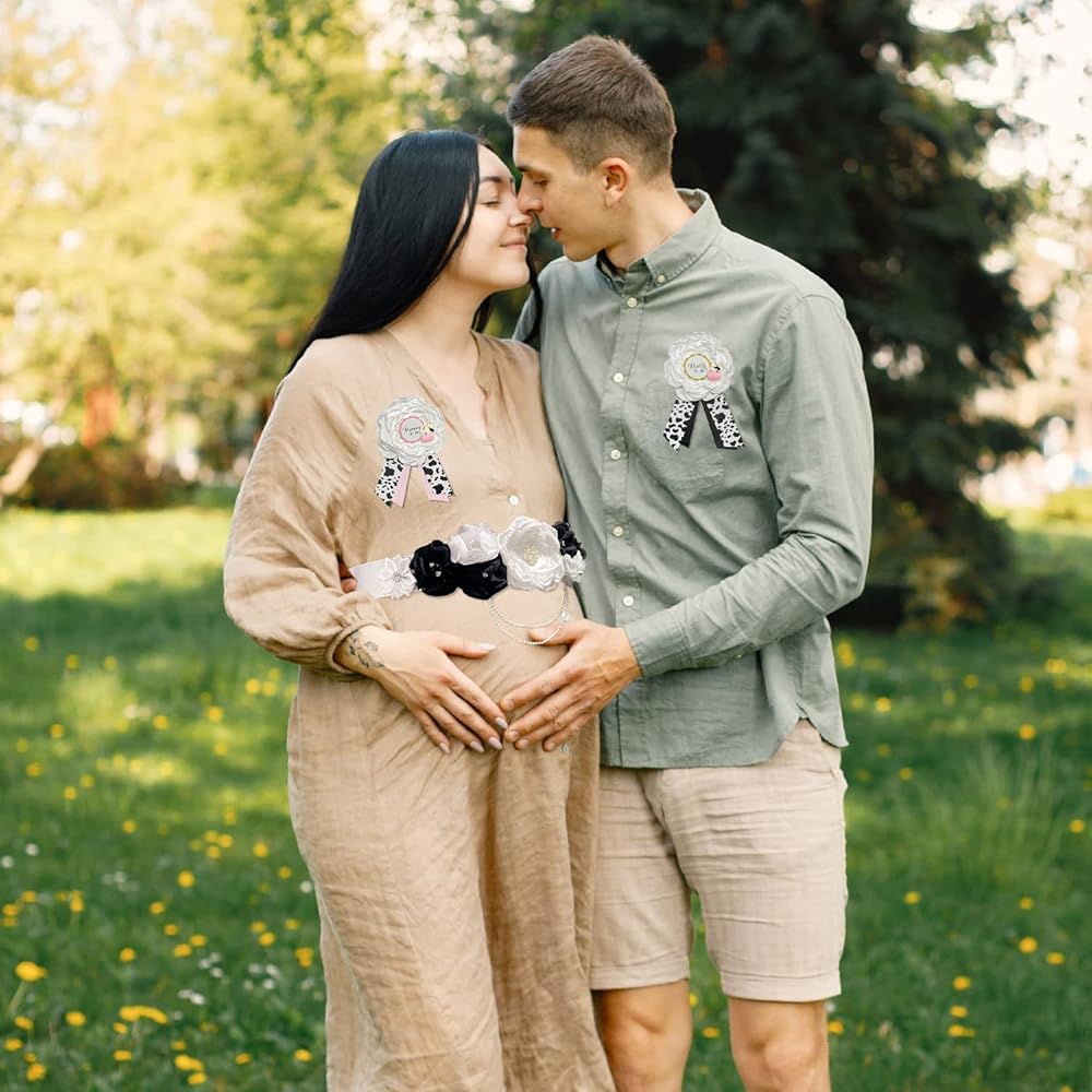 our unique and fun dinosaur-themed mom-to-be sash, the perfect accessory for the expecting mother who loves dinosaurs or wants to add a playful touch to her baby shower outfit. Made of beautiful flowers sewn with rhinestones and pearls, and the corsage pin with a cute dino print. It's an adjustable waistband for comfort, and detachable pins for easy wear and taken off. The set includes 1 maternity sash, 1 pc Mommy to be corsage pin, and 1 pc Daddy to be corsage pin.