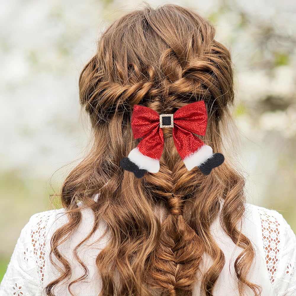 Item Name: Christmas Glitter Xmas Socks Bow Hair Clips
