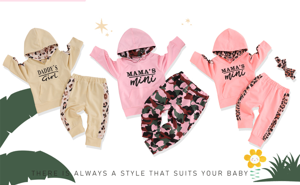❀ Floral pattern hoodie with kangaroo pocket design, variety of colors and prints,elastic waistband pants. Cute toddler floral outfit set will makes your baby girls more lovely.