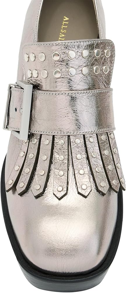 Statement shoes? Right here. The Zia Studded Loafers are a standout. Made from shiny leather with a square toe and large heel. We've added our branded AllSaints buckle and back tab. Finished with studs for the added attitude – these shoes are party ready.