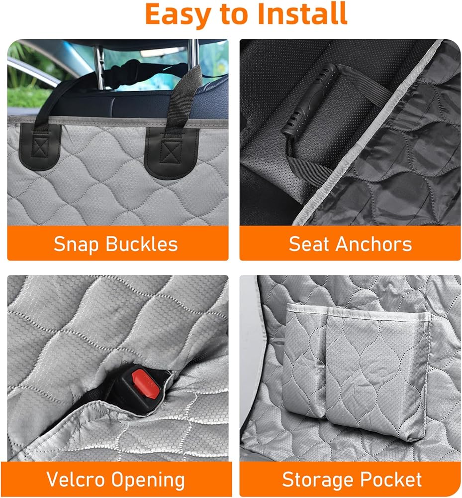 Easy to Install & Clean - With 4 quick-release durable buckles, 2 adjustable door slide straps, and 2 seat anchors, you can easily install this car seat cover for dogs in seconds. Easy to clean with a damp cloth, vacuum, or water shower.