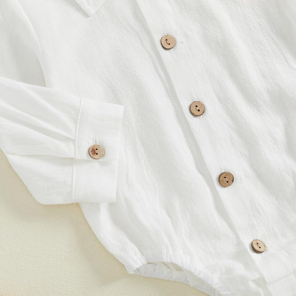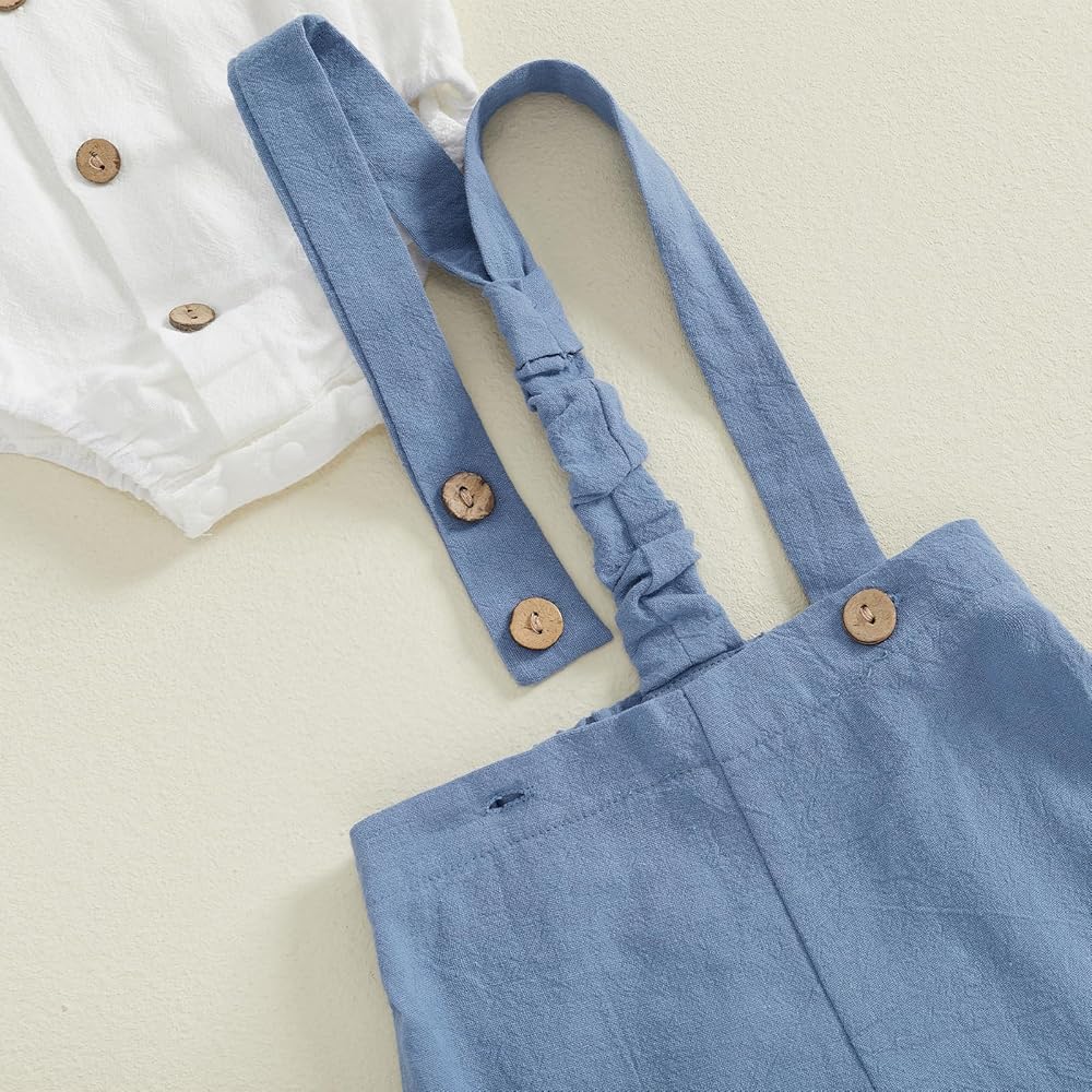 Infant Baby Boys Dress Outfit Sets Long Sleeve Lapel Collar Button Up Romper Solid Color Overalls Suspender Pants Sets Toddler Boys Fall Winter Spring Cotton Clothes Suit Formal Wedding Photoshoot Gentleman Outfit