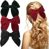 3 Pcs Large Christmas Fable Hair Bows, Handmade Fall Velvet Hair Bows, 5.31inch Large Velvet Ribbon Alligator Hairpins, Christmas Hair Accessories for Little Girls (Red,Black,Green)