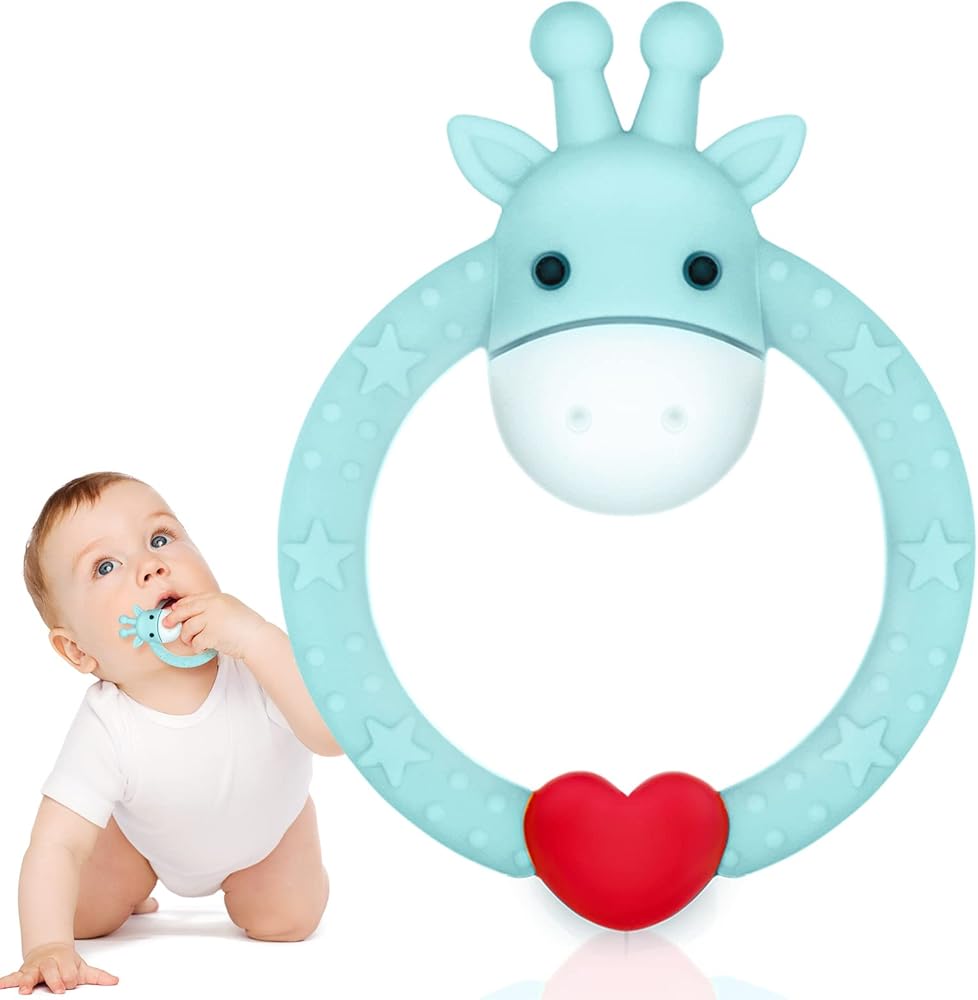 Catch Baby's Eyes: A giraffe ring teether with love heart design and ten colors for selection; the cute giraffe shape will help stimulate your baby; buy different colors for your toddlers, they can replace whenever they like