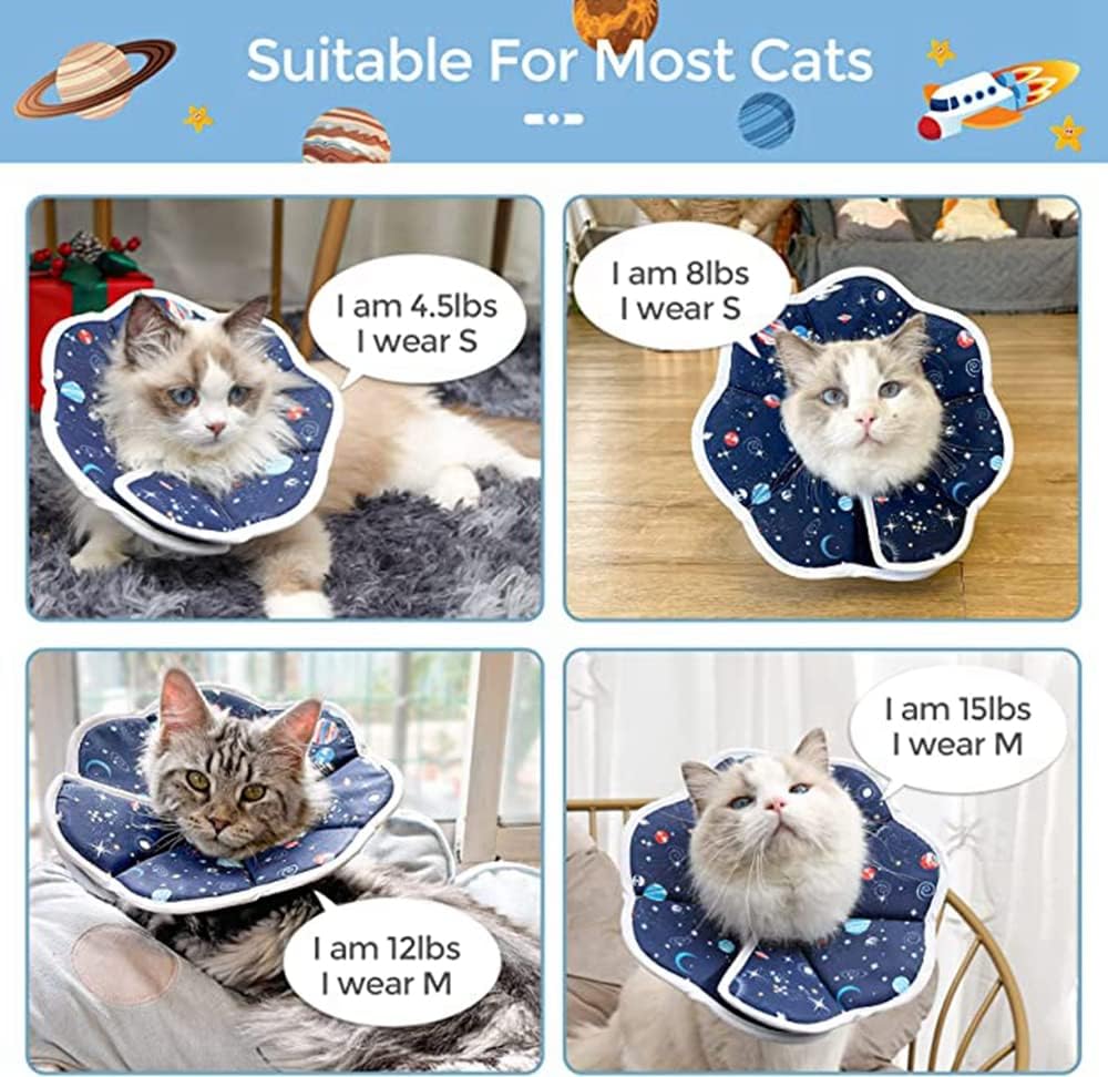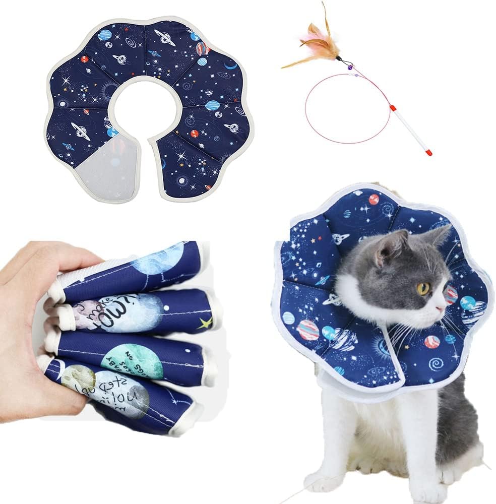 This super stylish Elizabethan collar protects your cat's recent surgery site from licking and chewing, and some cats need to wear one to prevent clawing and scratching at their face or to keep them from obsessively grooming themselves.
