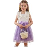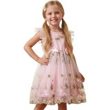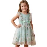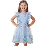 Baby Girls Summer Flower Applique Princess Dress, with adjustable ribbon at the waist. This dress is full of fairy spirit, sweet and cute. Your little princess will look like an elf in it.