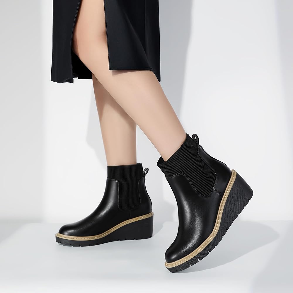 Stable Wedge Boots: The 3 inch low wedge ankle boots feature thick lug soles, strong grip, and good anti slip performance, allows you to walk safely even in slippery conditions