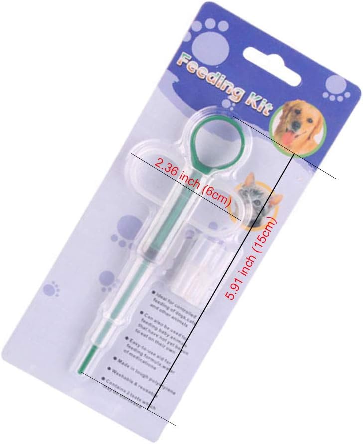 You will get: 2 piece of portable pet pill feeding syringes. 2X pet feeding syringes, 2X heads (one for capsule or pill, another for liquid).