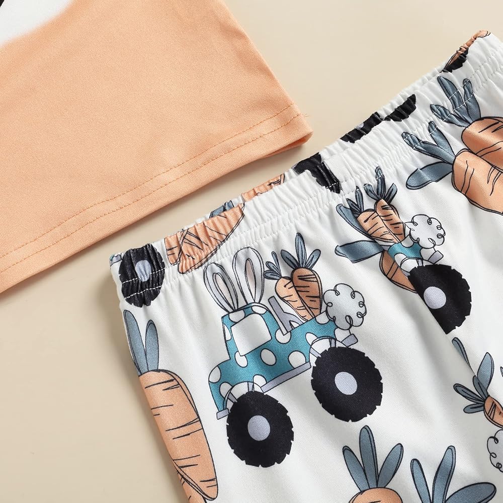 [Occasions]Spring summer shirts pants set Easter sweatshirt ruffle pants, perfect for the casual, school, travel, family gatherings, outdoor, holidays, birthday parties, photography in spring and summer. best gift for your baby on this Easter.