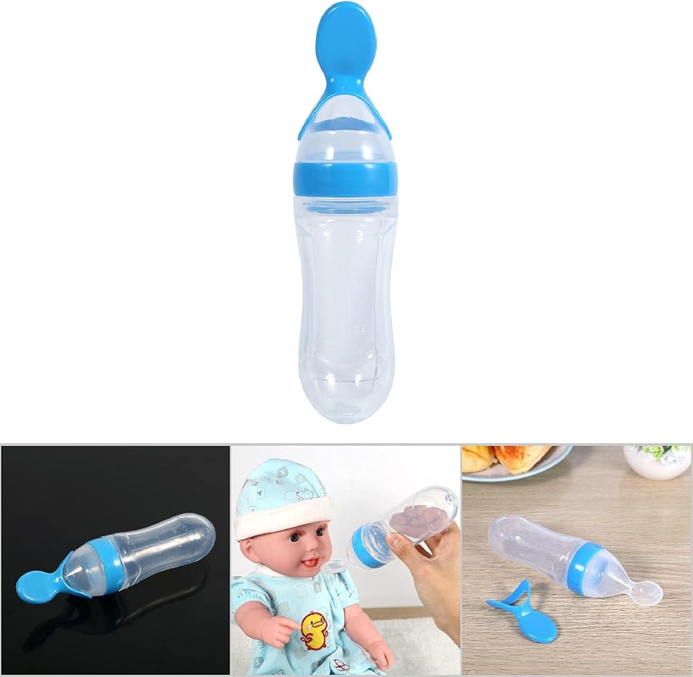 Our feeding bottle with a spoon could bring much convenience for mom to feed their babies, and it is for feeding cereal, milk, porridge and other semifluid foods. The bottle body is made of food grade silicone material, the spoon is made of PP material, , and to use, it is lightweight and has a compact size for easy carrying, and it is also very easy to . Such a practical feeding bottle, worth buying for your babies!