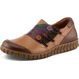 Premium, high-quality leather shoe featuring striking color blocking and unique colorful buttons on a flexible comfort sole. Comfort, Elastic, Flexible Sole, Padded Removable Insole.