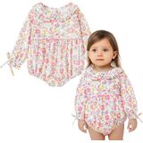 🌺MATERIAL➣ Baby girl floral long sleeve romper with high quality cotton fabric, lightweight and breathable.