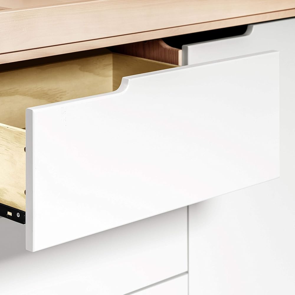 SMOOTH GLIDE DRAWERS & ANTI-TIP: Pre-installed ball-bearing glides for easy opening even during nap time. For added safety, stop mechanisms on the drawers prevent them from falling out. The drawer extensions have been designed to reduce tip-over risk which exceeds CPSC's ASTM F2057-23 standard. Anti-tip kit is also included.