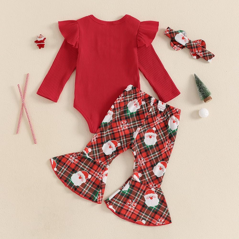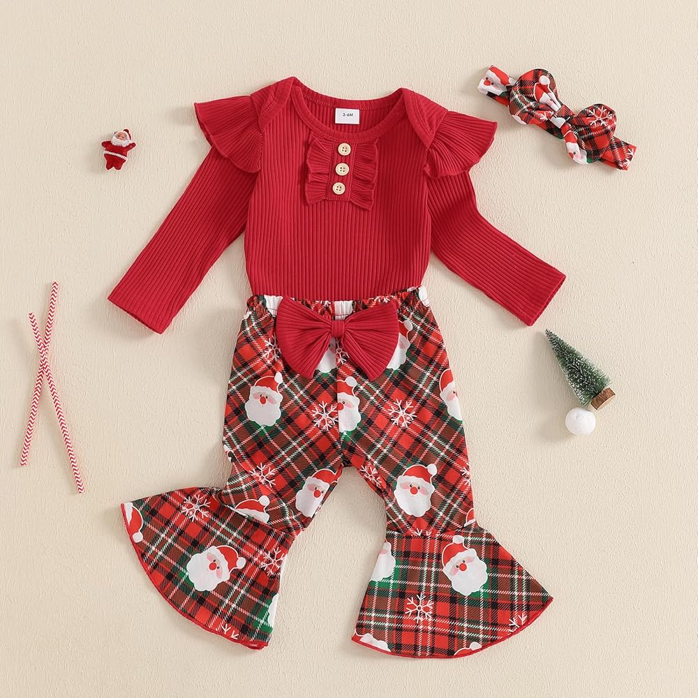 Unique design: Girls christmas outfits, baby flare pants,baby girl christmas outfit, christmas baby girl outfit, baby girl long sleeve romper bell bottom pants set,baby girl ribbed knit fall winter clothes make your princess more adorable and eye-catching