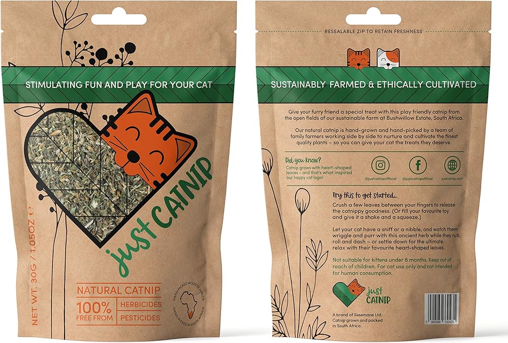 Just Catnip - Natural Catnip for Cats - 100% Natural - Sustainably Grown in South Africa - Ethically Made Cat Toy & Cat Treat - Maximum Potency Your Kitty Will Go Crazy for (1.05OZ/ 1 Cup)