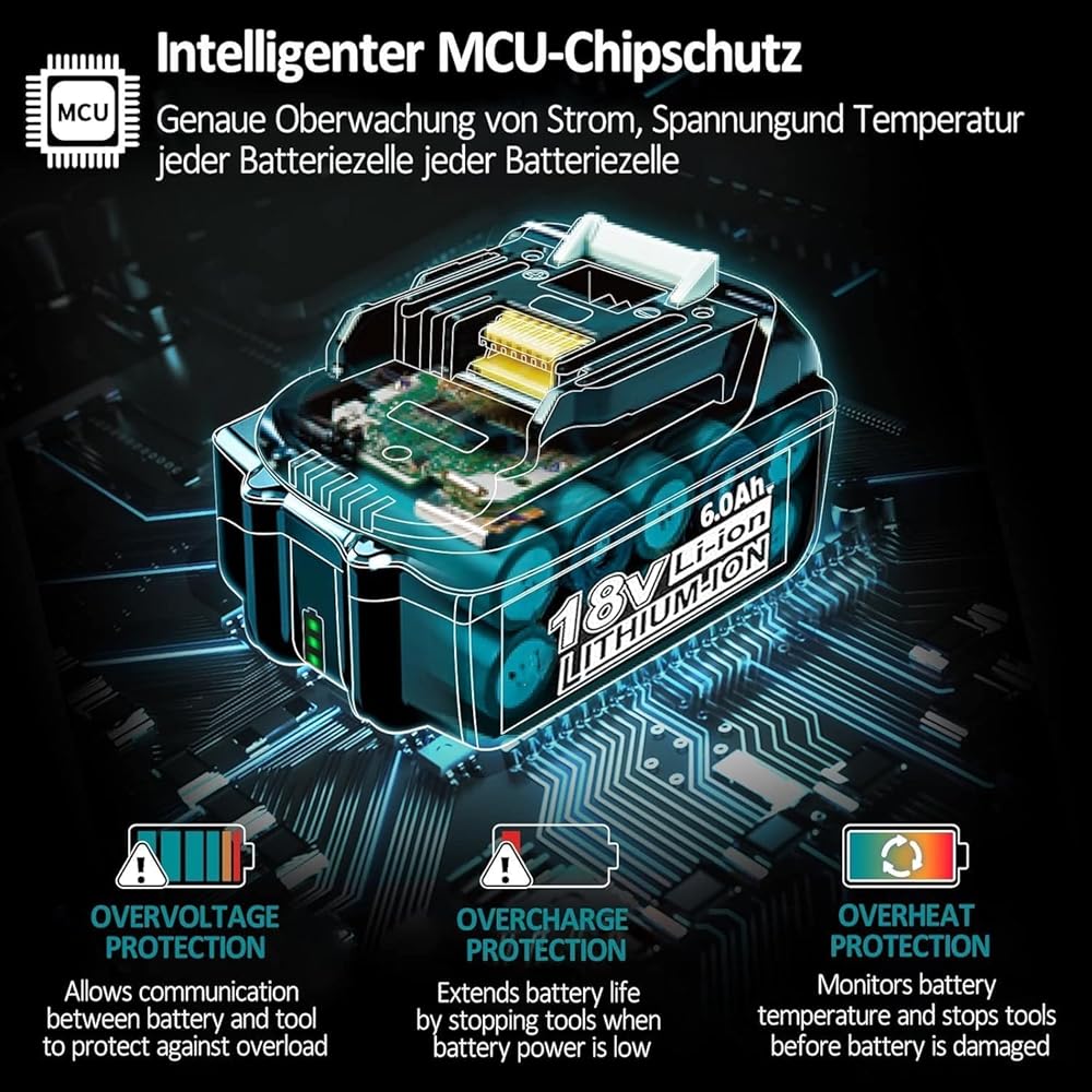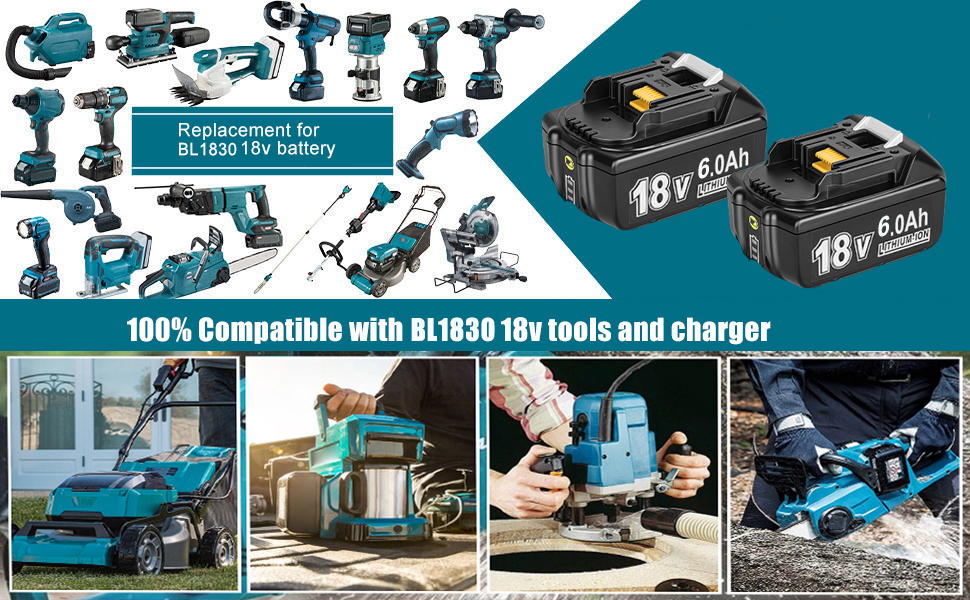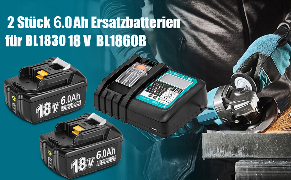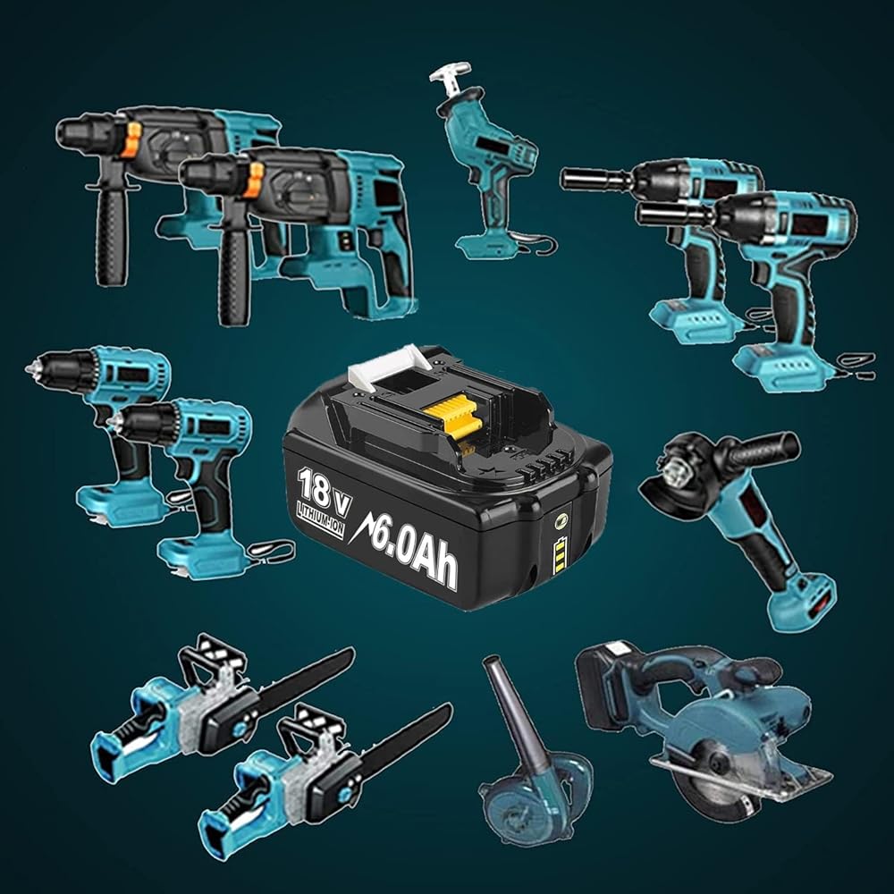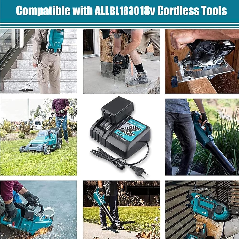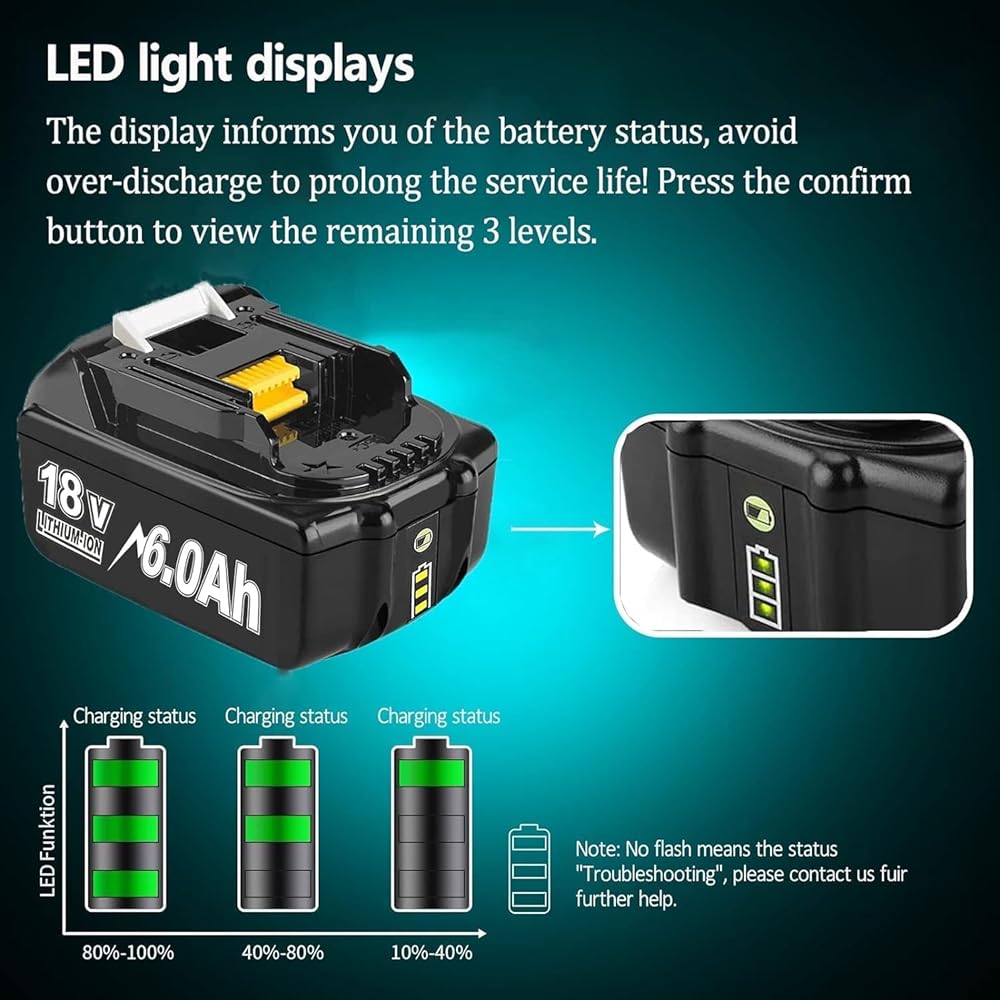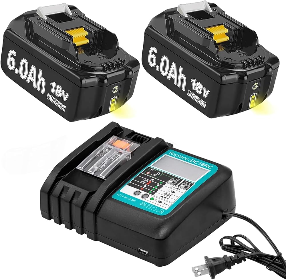 🔋【BL1860 Battery 】Battery Voltage: 18V | Battery Capacity: 6000mAh | Wattage: 108Wh | Battery Type: Rechargeable Lithium-ion | Made with high quality Li-ion cells. Compatible with 18v cordless tools. | Package Include: 2 *BL1860B battery and 1* DC18RC charger