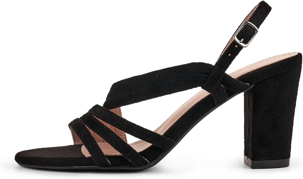 Appropriate height: Round toe high heels is 2.95inch/7.5cm. The design of the open toe and the three-character belt elongates your figure and is unique in the crowd.